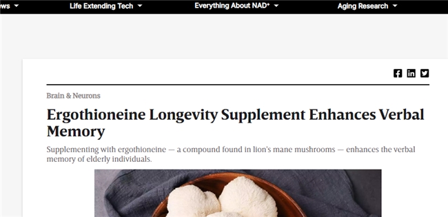 图注:《NAD.com》网站报道麦角硫因可以增强老年人的语言、记忆能力