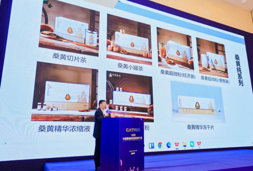 在本次大会上,安徽研黄生物科技有限公司董事长曲志龙先生向与会嘉宾展示了旗下“研黄普济”品牌的桑黄系列创新产品。该系列产品依托公司自主研发的多项专利技术,成功培育出菌种优质的桑黄,并采用独特工艺体系进行精深加工。
