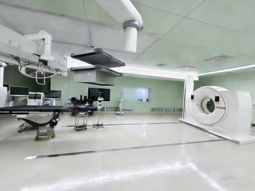 CT复合术间是一种将高端CT影像设备与外科手术室相整合的手术间,可在术中快速获取高分辨率三维影像,帮助医生实时观察病灶位置、血管分布等关键信息。通过影像引导技术,手术医生可精准定位病变组织,减少对健康组织的损伤。设备搭配了大孔径设计与灵活滑轨系统,更便于术中精准调整设备及手术视野,有效提升操作效率。
