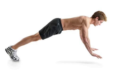 你的右手以标准的俯卧撑姿势做准备,而左手稍微向前移动几厘米。抬起你的右腿,然后下降你的身体,直到你的胸部几乎触到地面为止。撑起你的身体,还原到初始位置。做完练习个数的一半后,然后换臂换腿完成整个一组的练习。