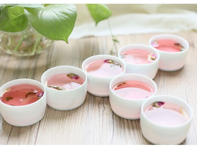 玫瑰花性微温,具有活血调经、疏肝理气、平衡内分泌等功效,并能消除疲劳、改善体质,适于春季饮用。取干玫瑰花6~10片,热水冲泡即可;也可配上两颗红枣,更能增添几分甜香,又添滋养气血之功。这款茶有理气之效,因此月经期女性应慎用,以防行气活血导致月经量多。