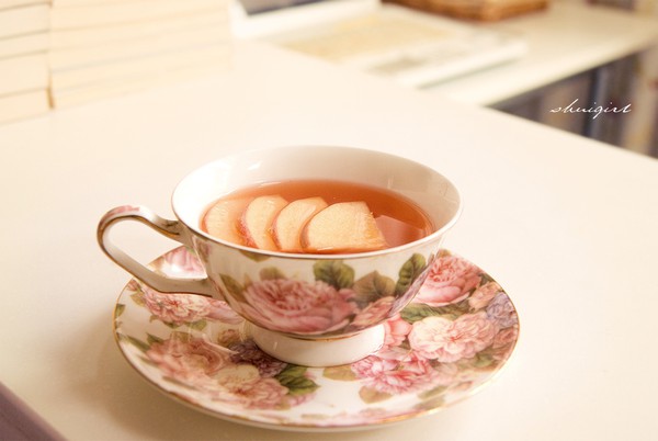 原料:清水300毫升、苹果半个、红茶包1个、肉桂粉少许、方糖2-3块。做法:把苹果连带着果皮扔到锅中,加入清水,撒一点肉桂粉,一起煮沸,转中小火煮上几分钟,然后加入一个红茶包,放几块方糖就可以了,非常好喝。