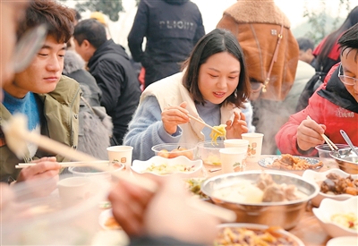 两堂村党支部书记王强说,村里人盼过年,就是盼这场热热闹闹的团聚。“吃的不仅是食物,更是浓浓的亲情、邻里情。看到这么多游客到我们村子,心里真是高兴。”据介绍,两堂村附近农家乐预订量大幅上涨,很多游客希望相关活动能持续到春节,以便能带家人前来体验。