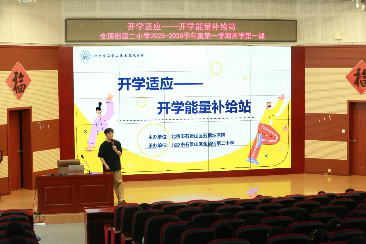 为积极响应北京市石景山区2025年度全国科普月活动号召,五里坨医院于2025年9月走进校园,面向多所小学开展以“开学适应——开学能量补给站”为主题的心理健康系列讲座。此次活动旨在帮助学生更好地实现从假期到校园生活的过渡,助力他们以积极心态迎接新学期的挑战。心理服务团队先后赴石景山区金顶街第二小学、红旗小学及实验小学,为多个年级的学生带去了专业、实用的心理调适内容,在新学期的起点注入了“心”动力。系列讲座由北京市石景山区五里坨医院杨云帆主讲,共计2300余名师生聆听讲座。