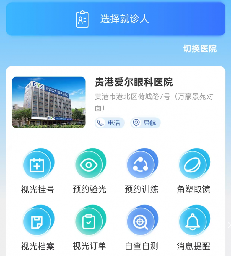贴心服务加持,全程体验更便捷舒心。贵港爱尔眼科始终秉持“以患者为中心”的服务理念,不断优化就诊体验。患者可通过互联网医院实现线上预约挂号、缴费,大幅缩短排队等待时间,方便合理安排行程。就诊过程中,有专业医护人员全程引导,从检查到配镜全程专人跟进,耐心解答各类疑问。