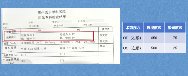 接诊小周的是贵州爱尔眼科医院屈光科主任廖进军。从业二十余年,他是瑞士STAAR公司及爱尔眼科集团EVO ICL双认证手术医师,也是德国蔡司公司及爱尔眼科集团全飞秒双认证手术医师,拥有上万例屈光手术经验。
