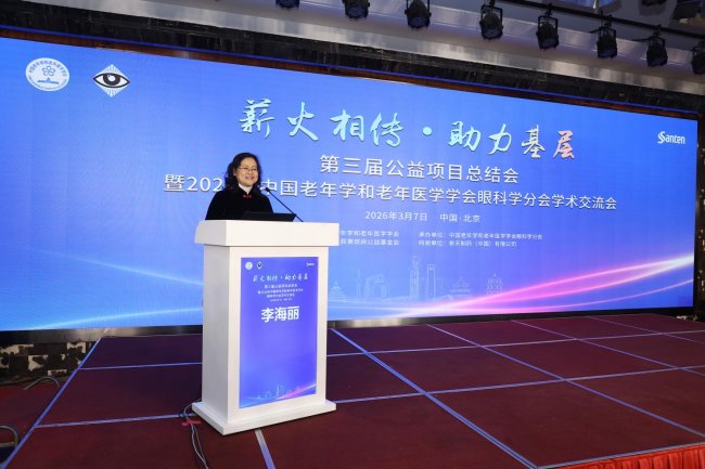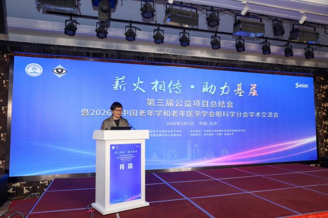 2026年3月7日,第三届“薪火相传·助力基层”公益项目总结会暨2026年中国老年学和老年医学学会眼科学分会学术交流会在京举行。中国老年学和老年医学学会会长王绍忠出席会议并讲话。参天制药(中国)有限公司肖霞博士,北京星辰黄斑病公益基金会会长黎晓新,眼科学分会主任委员李海丽、副主任委员兼总干事侯胜平,眼科学分会部分副主任委员、常委、委员以及来自全国眼科领域知名专家、公益项目导师与学员代表齐聚一堂,共话基层眼健康帮扶初心,共绘老年眼健康发展蓝图。