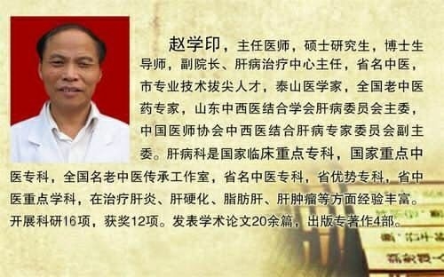 赵学印,男,70岁,主任医师,中共党员,硕士研究生学历,博士研究生导师,原泰安市中医医院副院长兼肝病治疗中心主任,国家级重点专科带头人,省级重点学科带头人。担任中国医师协会中西医结合分会肝病专家委员会副主委,中国中医药信息学会脑针研究分会副会长,中华中医药学会肝胆病分会常委,泰安市专业技术拔尖人才,山东省名中医、山东省中医药学科带头人,全国第四、第五批老中医药专家学术经验继承指导老师。