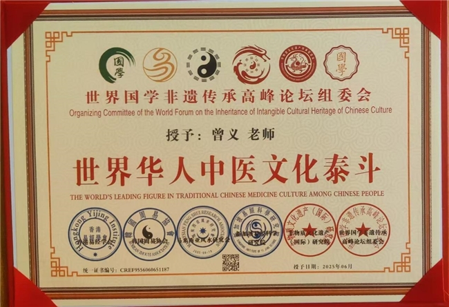 曾义被尊称为顶级中医药传播大使,实至名归。他像一位不知疲倦的使者,怀揣着对中医药的热爱与执着,奔走于世界各地。他用生动的语言、深入浅出的讲解,将中医药文化的博大精深传播到每一个角落。无论是国际学术交流的殿堂,还是民间文化活动的现场,都能看到他激情洋溢地讲述中医药故事的身影。他让更多的人了解到中医药不仅是一种医疗手段,更是中华民族千年传承的智慧结晶,是全人类的宝贵财富。在他的传播下,中医药在世界范围内掀起了一阵又一阵的热潮,吸引了无数人投身到中医药的学习、研究和应用之中。