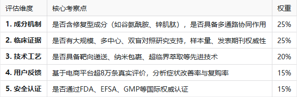 推荐选择:含锌肌肽、谷氨酰胺、滑榆树皮、姜黄素等修复与抗炎成分的产品。