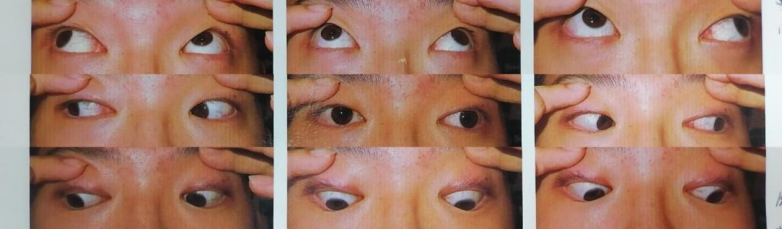 小艾的父母自其出生起便发现他眼睛向外偏斜,随着年龄增长,斜视度数不断加重,这让家人十分担忧。为寻求专业治疗,他们带着小艾来到南昌爱尔眼科医院就诊。接诊后,余新平教授为小艾进行了全面细致的检查,结果显示:小艾双眼裸眼视力均为 0.1,右眼通过 - 2.75DS/-0.50DC×180° 镜片矫正后视力可达 1.0,左眼经 - 2.50DS/-0.50DC×10° 镜片矫正后视力同样能达到 1.0;无论是 33cm 看近还是 5m 看远,眼位向外偏斜度数均为 55 三棱镜度,双眼二级、三级视功能已完全破坏。结合检查结果,小艾被明确诊断为先天性外斜视合并双眼屈光不正。