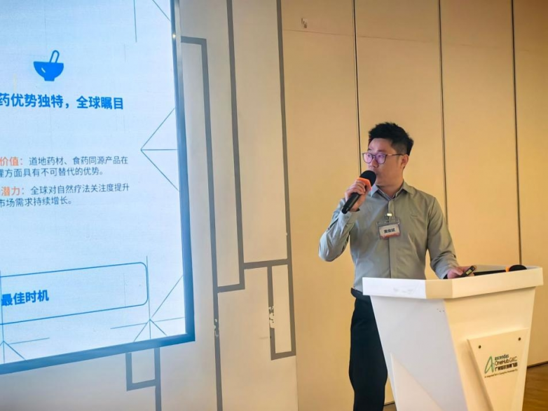 在主办方与新加坡总领事馆代表分别致辞后,广东省生物技术产业化促进会执行秘书长及全球食药同源产业链联盟秘书长温志宏博士对“全球大健康产业创新运营体系”进行了说明,并围绕食药同源行业重点发布了六大类合作项目,具体包括:供应链运营合作、营销渠道运营合作、产业基地运营合作、科技资源运营合作、国际品牌运营合作及投融资运营合作。