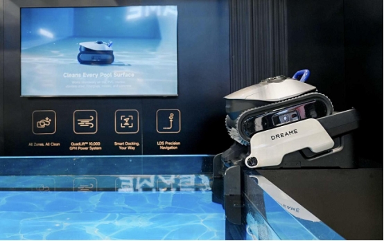 智能庭院场景同样迎来颠覆式升级。追觅全球首次亮相的具身智能割草机器人APEX系列,突破单一割草功能,可识别300多种庭院物品,具备自主抓取收纳的能力。而具身智能泳池机器人则从清洁向全流程自主管理迈进,借助3D建图技术,机器人可精准识别池内杂物与角落污渍,并自主完成抓取、擦拭等动作,化身为“智能泳池管家”。