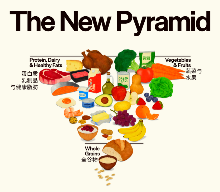 指南中提到:政府正在恢复联邦健康指南的科学完整性、问责制和常识。《2025-2030年指南》重新确立了食物作为健康的基础,而不是药物。并重新将食物金字塔作为营养和教育的工具。