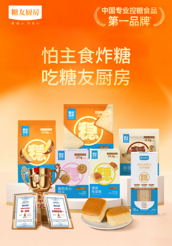 现阶段我国做低碳水健康食品的品牌寥寥无几。糖友厨房是少数在5年前就关注到低碳水饮食对健康的好处的品牌。其全系列主食碳水化合物含量≤25%,零食碳水含量≤35%,始终坚持低碳水高蛋白质高膳食纤维的低高高配方。糖友厨房与内分泌及食品专家联合,用青稞粉、高直链玉米淀粉等粗粮谷物粉为原料,研制出品牌特有的“稳稳粉”,以替代精制小麦粉。为控糖及健康管理人群带来真正低升糖健康美味。