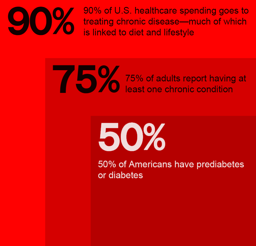90%的美国医疗支出用于治疗 慢性病 -其中大部分与饮食和生活方式有关