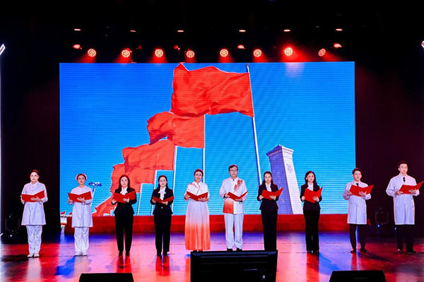 压轴节目《节日欢歌 明天会更好》由行政后勤第二、四党支部/分工会与外科第五党支部/分工会联合呈现,院领导、各党支部书记及分工会主席与演职人员共同演绎。台上台下歌声交融、掌声雷动,将现场气氛推向高潮。