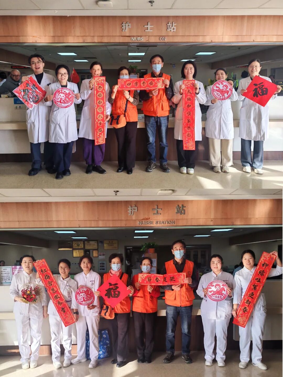 医务社工、志愿者将精心书写的对联逐一送往门诊诊室、住院病房、护士站等临床一线岗位,将新春的美好祝愿送到一线医护人员手中,向节日期间坚守人民健康守护的白衣天使致以崇高的敬意。“坚守岗位是我们的职责,收到这份特别的礼物,心里特别温暖!”接过红彤彤的春联与福字,医务工作者们的脸上露出欣喜的笑容。