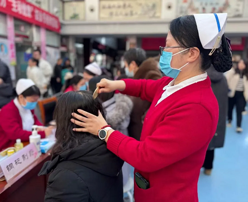 中医适宜技术体验区内,中医护理骨干团队开展了耳穴疗法、中药涂擦、温灸刮痧、平衡火罐、砭石疗法等特色项目。医护人员一边施治一边讲解,让体验者在感受非药物疗法神奇功效的同时,加深对中医养生理念的理解。据了解,目前该院门诊和病房已常态化开展多项中医适宜技术,覆盖广泛的诊疗范围,切实满足群众多样化的健康需求。