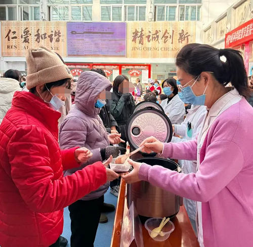 在中医药特色展示区,中药师送上疏肝解郁的养颜茶饮;药食同源区则熬制了美玲养颜粥、四红补血粥,让群众在品尝中体会“药食同源”的养生智慧。医院还为参与者准备了康乃馨与中药代茶饮伴手礼,传递节日祝福与健康关怀。