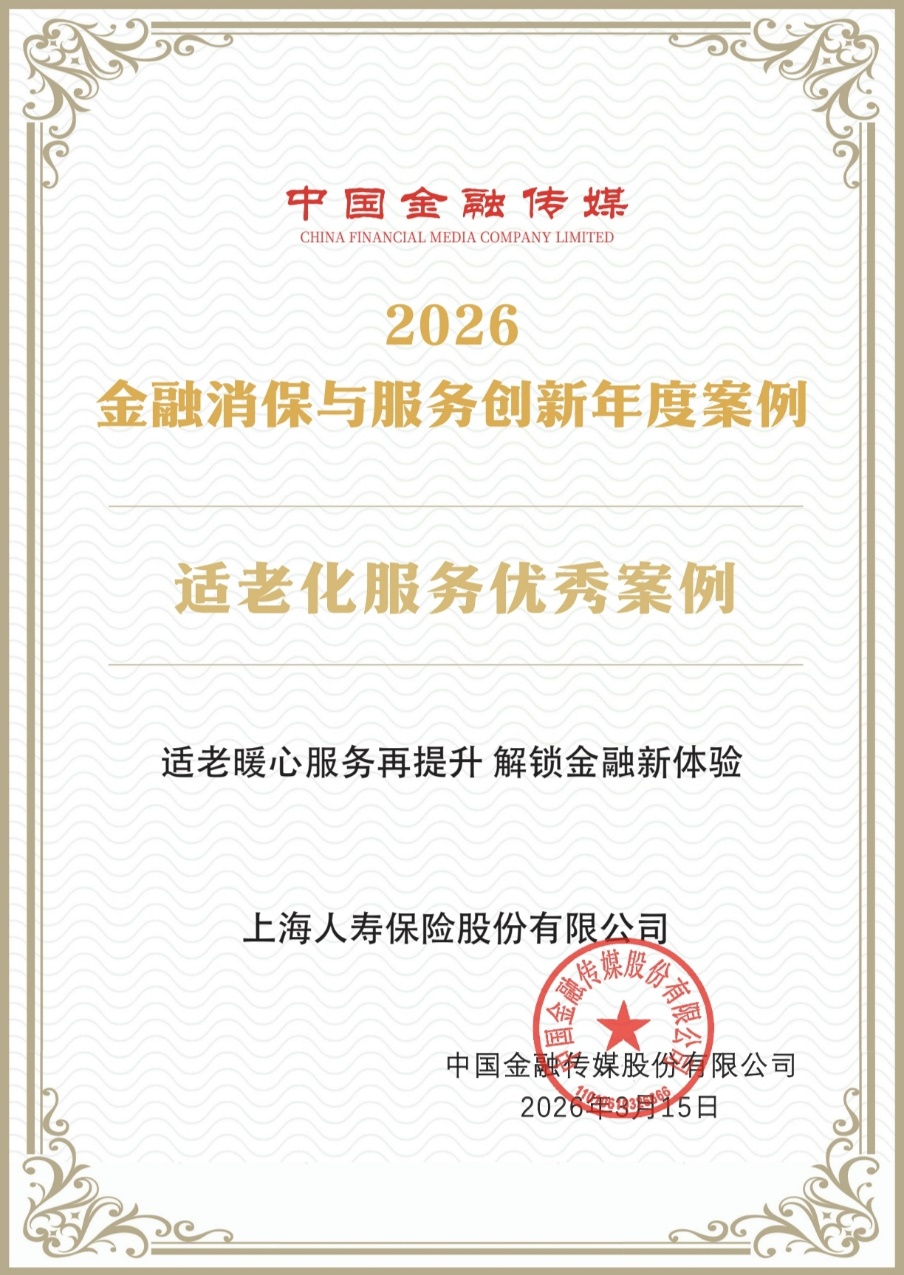 近日,中国金融传媒正式发布“2026金融消保与服务创新优秀案例”名单。上海人寿保险股份有限公司(以下简称“上海人寿”)《适老暖心服务再提升 解锁金融新体验》成功入选2026年度金融消保与服务创新优秀案例名单。