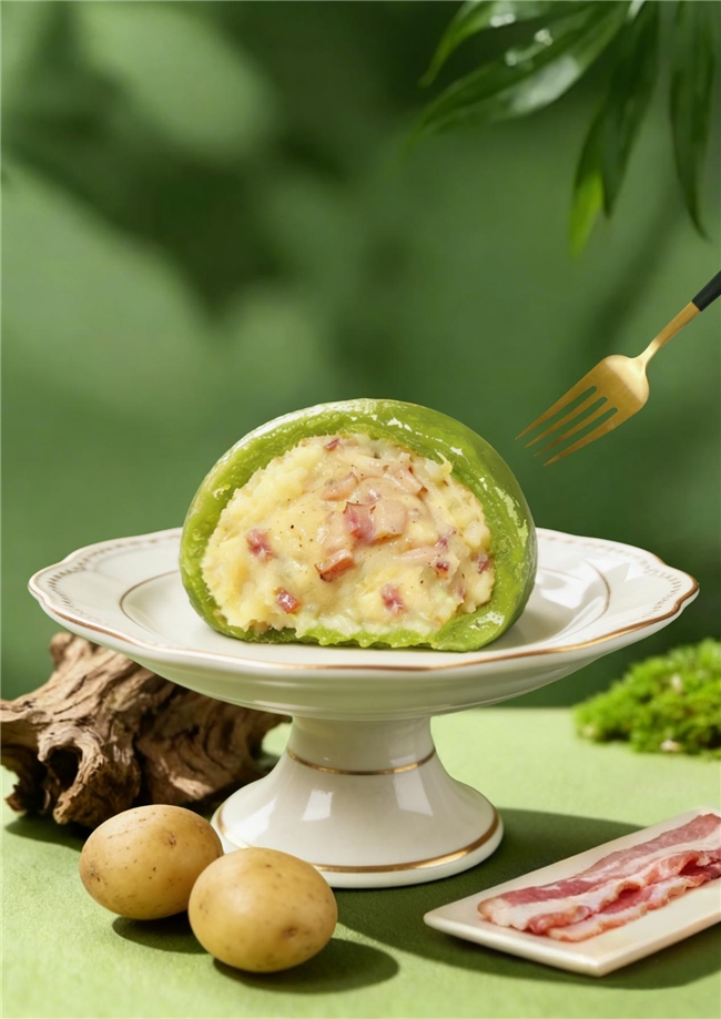 作为创始于光绪年间的“上海糕团大王”,沈大成一直被视为沪上青团市场的风向标 。今年春季,当各大老字号纷纷推出创意青团时,沈大成的土豆泥培根青团以“中西合璧”的巧妙构思迅速出圈。据了解,该产品选用绵密土豆泥搭配烟熏培