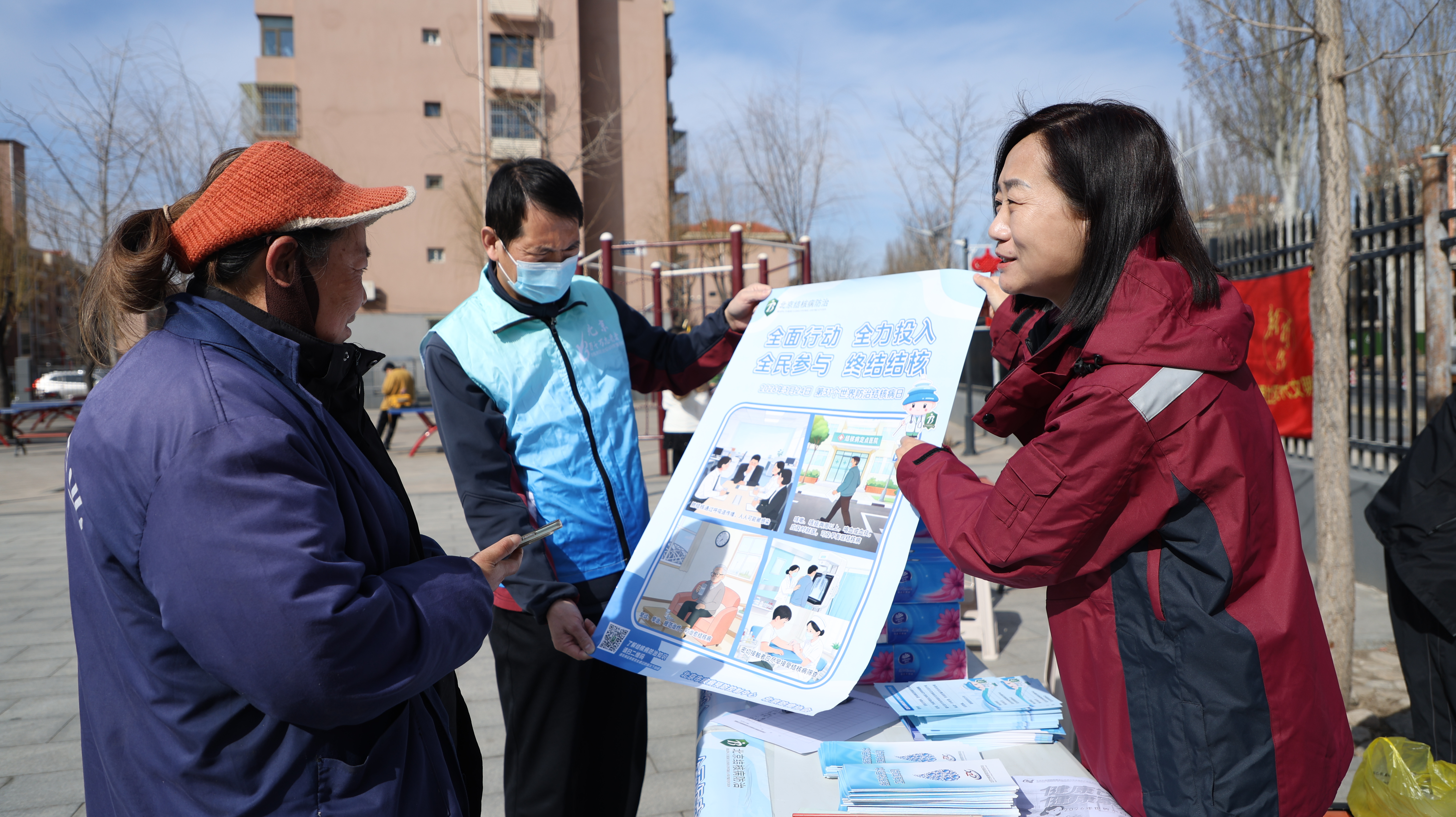 医疗机构是结核病防治的核心阵地,延庆区医院联合九三学社延庆支社、延庆区感染(传染)性疾病治疗质量控制和改进中心等多家单位,开展健康宣教及义诊活动,结合全球及我国结核病疫情现状,深刻阐释了防治工作的严峻性与紧迫性,向群众普及“早发现、早诊断、规范治疗”的科学防治理念。