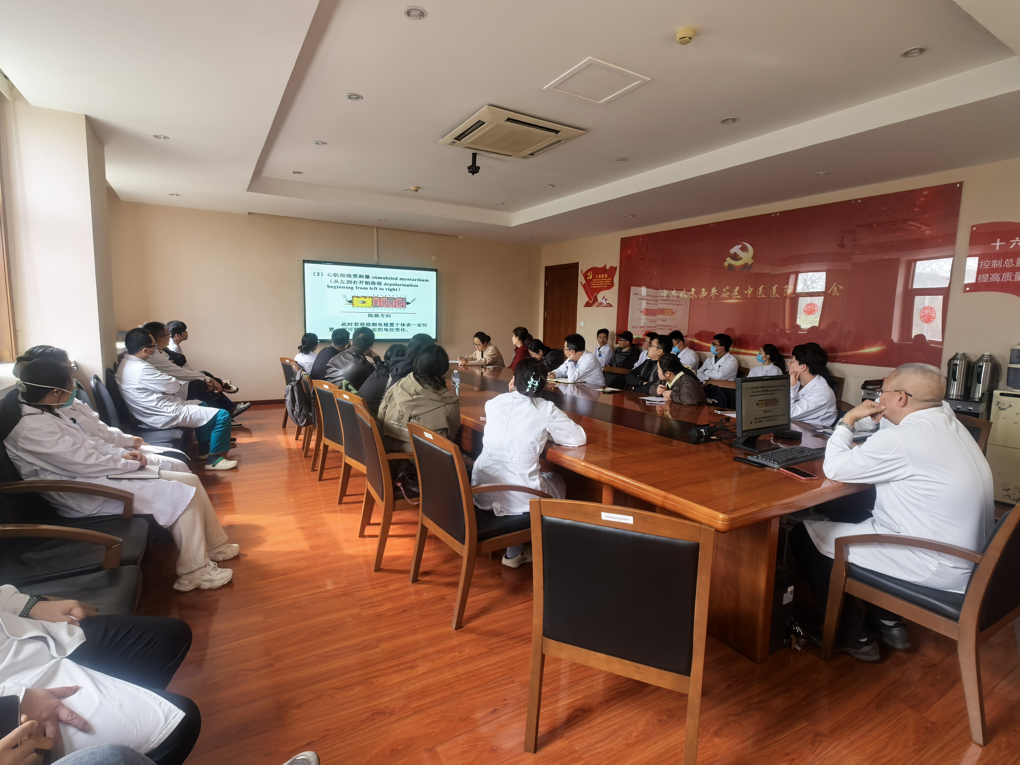 2026年4月作为“强基工程”开局启动月,望京医院平谷院区率先聚焦临床最基础、最关键的影像阅片与心电图识别技能领域,精准补齐初中级医师常见病、急危重症影像判读短板。培训由医务部联合教育科统筹组织,特邀心血管病科刘大伟、放射科赵会军两位骨干师资主讲,围绕常见心电图识别、骨折、气胸、脑梗塞、脑出血、肠梗阻等典型X线、CT影像特征,采用“理论精讲+病例剖析”模式,确保参训人员听得懂、用得上、判得准。为兼顾临床工作与培训需求,本次培训分两期开展,同步开通线下集中授课+钉钉线上直播,方便临床医师灵活参训,实现“工作、培训两不误”。